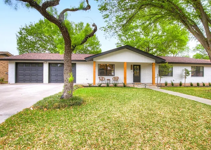 The 2-bedroom Luxe-Modern House With Firepit 3 Blocks From Main St! Villa is located nearly a 25-minute walk from 290 Wine Shuttle and 110 km from San Antonio International airport. This property comprises 2 bathrooms that offer a separate toilet, a bath and a shower.